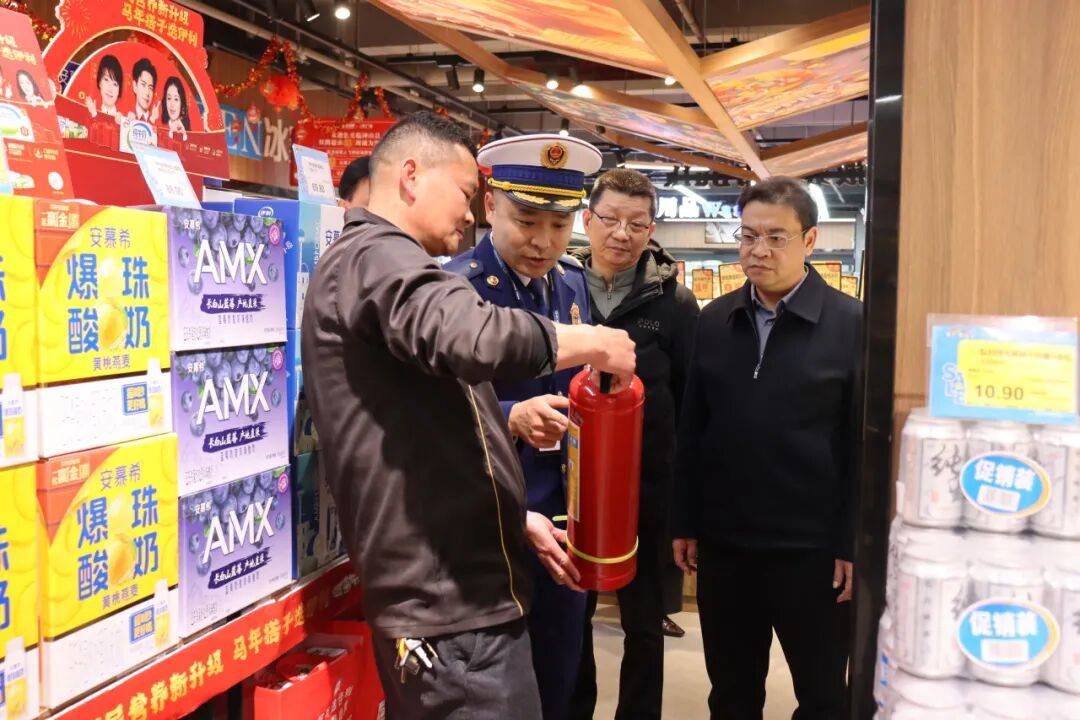 钟山县县长陈信东带队深切佳润家超市等人员稠密场合开展春节前消防平安查抄,沉点查看平安义务、消防设备、应急预案及用火用电平安,富川瑶族自治县